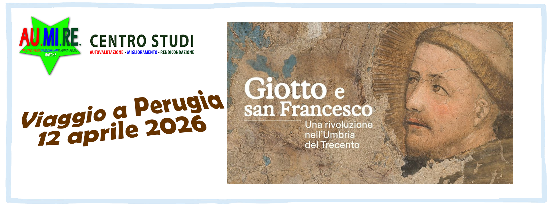MOSTRA Giotto e San Francesco - Perugia MOSTRA Marc Chagall Buon viaggio, Franco. ISCRIZIONE SCUOLE al CENTRO STUDI AU.MI.RE VAI AL MODULO ISCRIZIONE INDIVIDUALE al CENTRO STUDI AU.MI.RE VAI AL MODULO ISCRIZIONE ai moduli formativi VAI AL MODULO AREE TEMATICHE DI RICERCA E FORMAZIONE Centro Studi AU.MI.RE VAI ALL'AREA RISERVATA GALLERY Foto eventi VAI ALLA GALLERY BOLLETTINI del Centro Studi AU.MI.RE. VAI AL BOLLETTINI